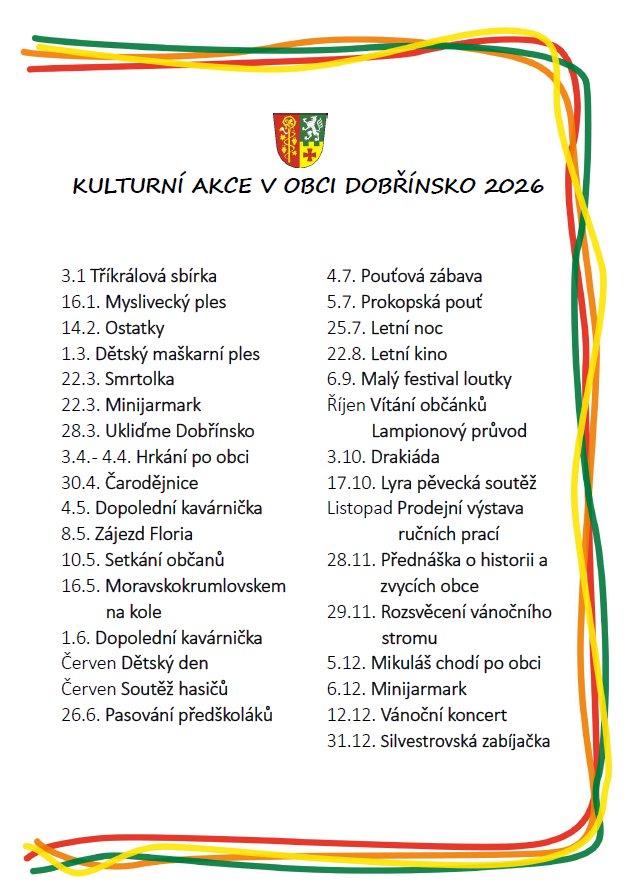 Obec Dobřínsko se v roce 2026 může těšit na pestrou nabídku kulturních akcí, které zahrnují tradiční i nové události.
